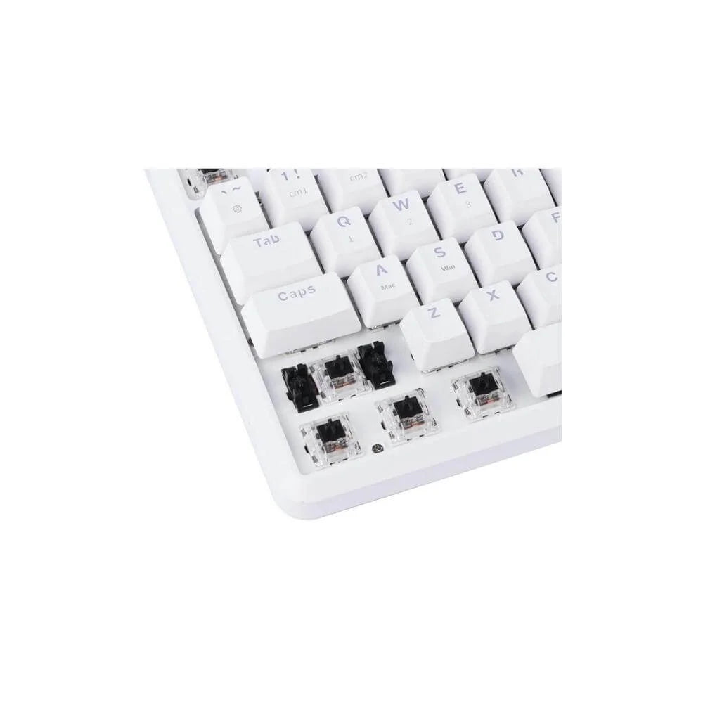 Ajazz K870T Wired/ Wireless Gaming Keyboard The Ajazz K870T Wired/Wireless Gaming Keyboard offers versatile performance with dual connectivity options and a space-saving TKL (Tenkeyless) layout. It features customizable RGB backlighting to personalize your setup and a hot-swappable design that allows you to easily change switches without soldering. Built with a durable ABS frame and shine-through keycaps, the keyboard is available with either Huano brown or red switches to provide a different feel for typing or gaming. Weighing 0.9 kg, it is sturdy yet portable, making it a reliable choice for any setup. It also comes with a one-year warranty for peace of mind