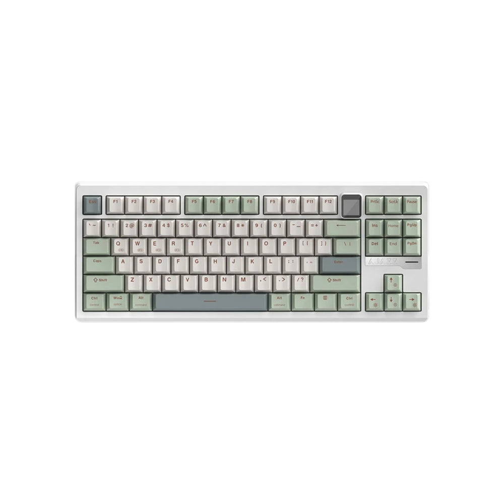 AJAZZ QS87 Max CNC Aluminum Alloy Mechanical Keyboard The AJAZZ QS87 Max is a premium mechanical keyboard with a durable CNC aluminum alloy frame and a sleek spray-coated finish. Designed for flexibility, it features tri-mode connectivity, allowing users to seamlessly switch between wired USB, Bluetooth, and 2.4GHz wireless modes. A standout feature is its 0.85-inch TFT color screen, which displays information and can even show custom GIF animations. The keyboard is powered by a large 8000mAh battery for extended usage. Equipped with TTC Flame Red V2 switches, a silicone particle mount style, and an FR4 slotted positioning plate, the keyboard provides a smooth and responsive typing experience. It also features dynamic RGB backlighting, PBT keycaps, and a 87-key TKL layout for a perfect blend of style, performance, and versatility