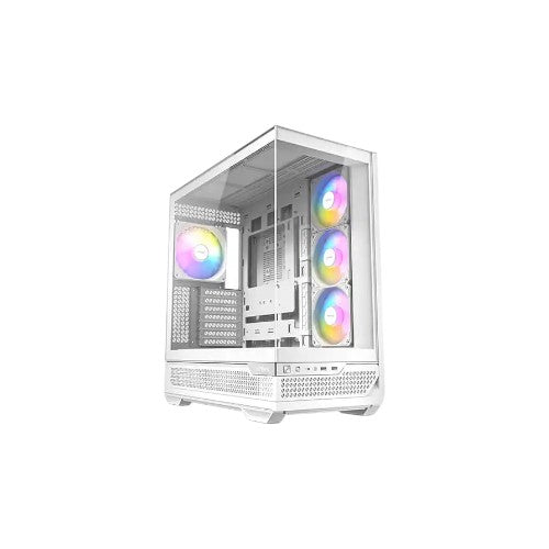 Engineered with a dual-chamber layout, the case separates the main hardware area from the PSU and storage section to improve airflow and ensure more efficient thermal management. It supports a vertical cooling architecture with capacity for up to ten fans, and comes pre-installed with seven ARGB PWM fans connected to an integrated fan controller—providing powerful airflow and customizable lighting effects. For liquid cooling enthusiasts, the chassis accommodates a wide variety of radiator options, including a 280mm side radiator, 360mm radiators on both the top and bottom, and additional mounting points for advanced cooling setups. Hardware compatibility is excellent, with support for GPUs up to 410mm, CPU coolers up to 160mm, and PSUs up to 240mm.
