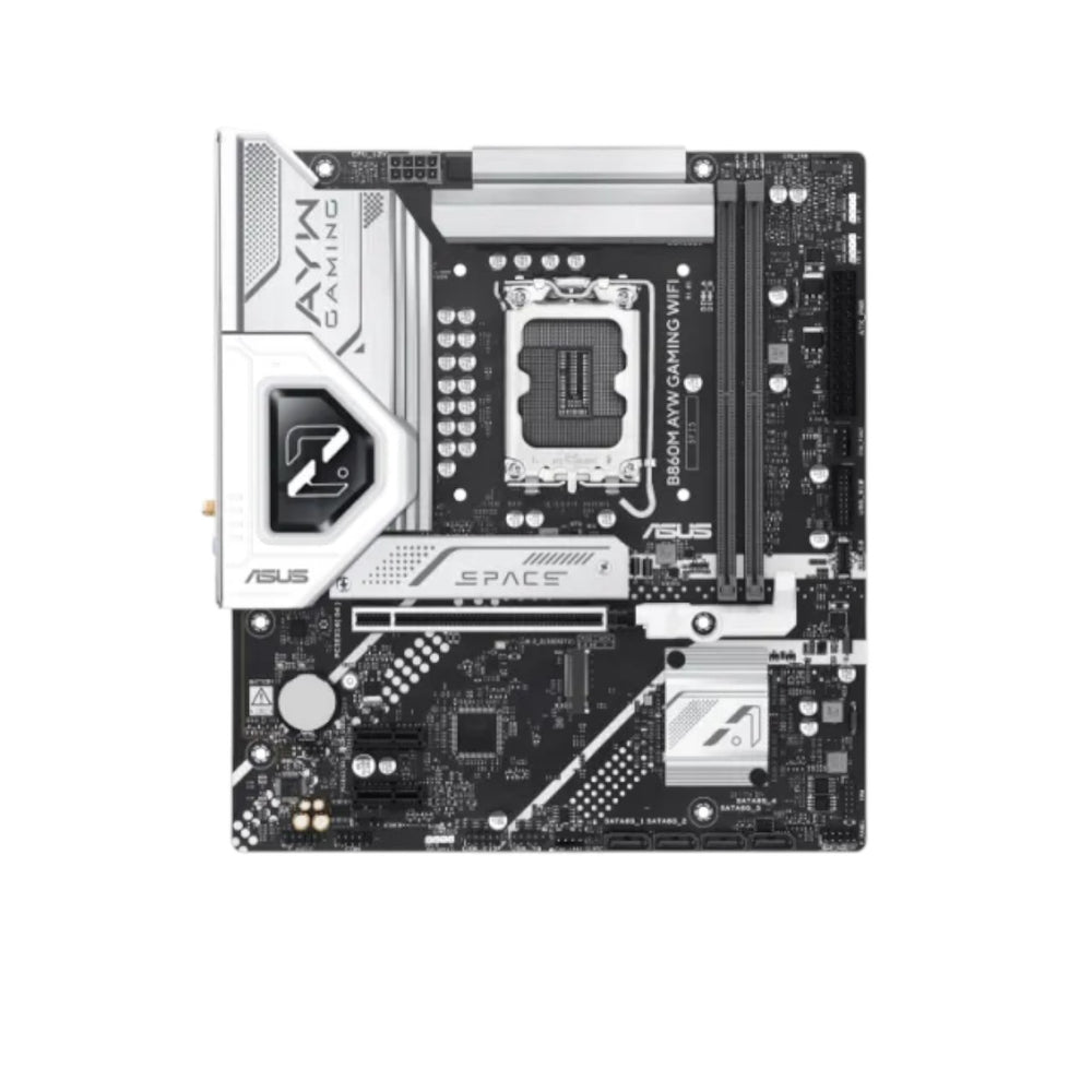 The ASUS B860M AYW GAMING WIFI LGA1851 Micro-ATX Motherboard is a next-generation gaming and performance powerhouse built to support Intel Core Ultra Processors (Series 2). Featuring the latest Intel B860 chipset and LGA1851 socket, it delivers cutting-edge speed, stability, and connectivity for gamers, creators, and power users.