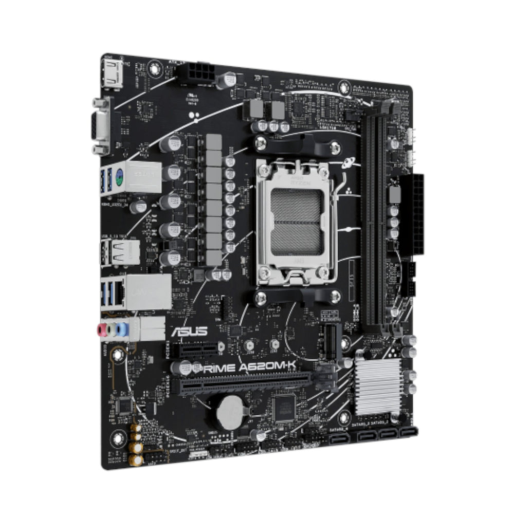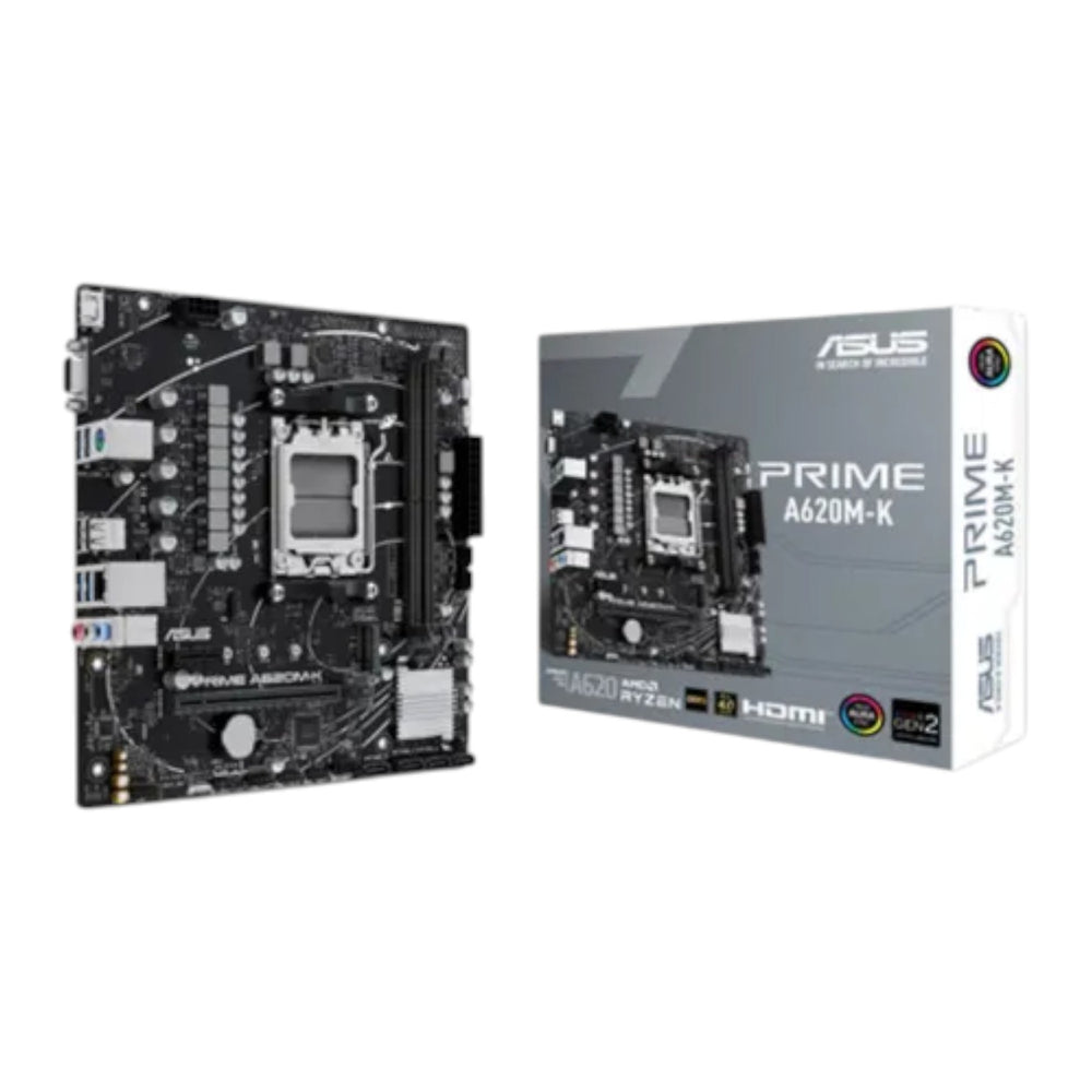 The Asus PRIME A620M-K-CSM AM5 mATX Motherboard delivers reliability, performance, and long-term stability in a compact design—perfect for modern workstations and small gaming builds. Powered by the AMD A620 chipset, it supports AMD Ryzen 7000 Series Desktop Processors, ensuring compatibility with the latest AM5 platform for next-generation computing power.