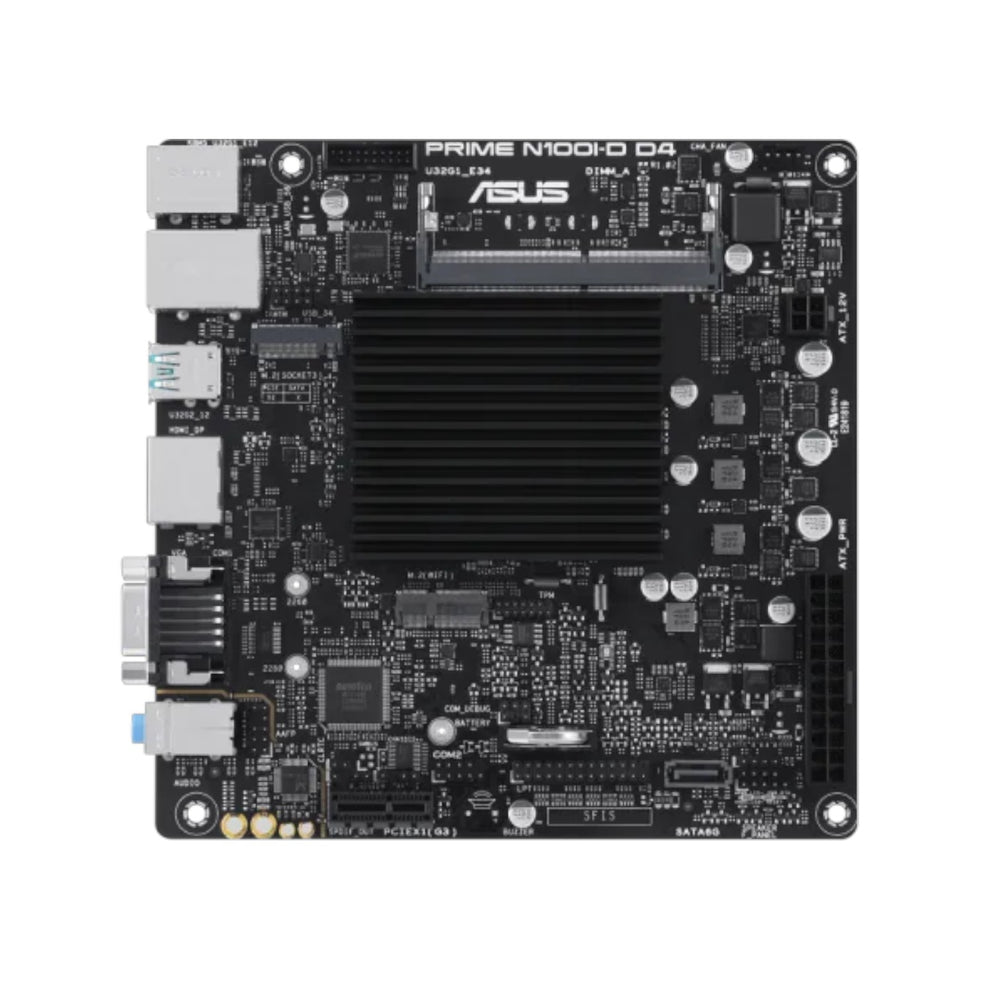 The Asus PRIME N100I-D D4 Mini-ITX Motherboard is a compact and power-efficient board built for the Intel Processor N100, offering silent, fanless performance ideal for small form-factor PCs, home servers, and industrial systems. With its efficient design and durable build quality, this motherboard delivers reliable operation while maintaining minimal power consumption.