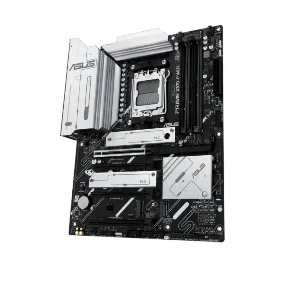 The Asus PRIME X870-P WIFI-CSM AM5 ATX Motherboard is a next-generation performance platform built to harness the full potential of AMD Ryzen 9000, 8000, and 7000 Series Desktop Processors. Powered by the AMD X870 chipset and the AM5 socket, this motherboard is engineered for advanced computing, AI workloads, and seamless multitasking, offering a perfect balance of performance, connectivity, and efficiency.
