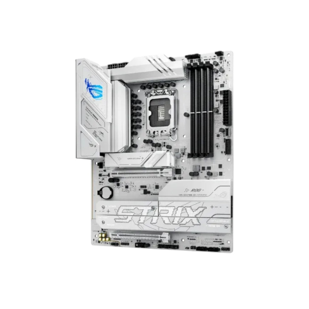 Aesthetically, the ROG STRIX B860-A stands out with its sleek white and silver design complemented by ASUS Aura Sync RGB lighting, allowing full customization and synchronization across compatible devices for a personalized build. The EZ DIY design includes Q-Design features like Q-LED indicators, Q-DIMM slots, and pre-mounted I/O shield, simplifying assembly and upgrades.