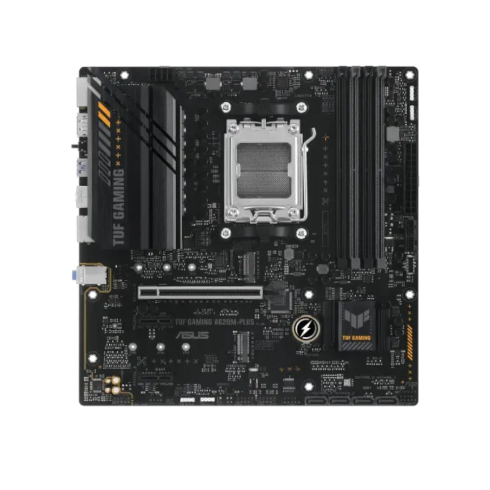 The ASUS TUF GAMING A620M-PLUS AMD AM5 Micro-ATX Motherboard is built for gamers who demand stability, performance, and durability in a compact form factor. Designed on the AMD A620 chipset, it supports the latest AMD Ryzen™ 7000 Series Desktop Processors with the AM5 socket, delivering cutting-edge performance for gaming and multitasking. With military-grade components, optimized power delivery, and advanced cooling, this motherboard ensures long-lasting reliability for intense gaming sessions and high-performance workloads.