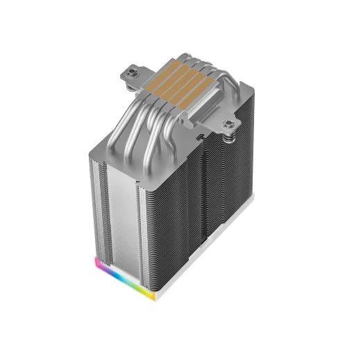 The cooler also features vibrant ARGB lighting, customizable via a 3-pin (+5V-D-G) connector and fully synchronized with popular motherboard software such as ASUS Aura Sync, MSI Mystic Light, and Gigabyte RGB Fusion. Its immaculate all-white finish perfectly complements white or RGB-themed builds, making it a centerpiece in any high-end PC setup.