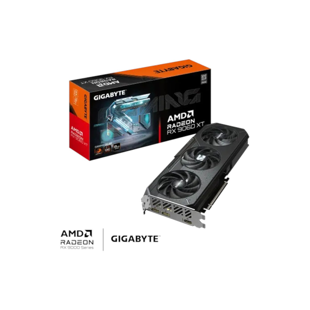 The GIGABYTE Radeon RX 9060 XT GAMING OC 8GB GDDR6 Graphics Card is a powerful next-generation graphics solution designed for gamers and content creators who demand high performance, stability, and advanced visual capabilities. Powered by the Radeon RX 9060 XT GPU, this graphics card delivers impressive computing power with 2048 stream processors and significantly enhanced clock speeds, reaching up to 3320 MHz boost clock and 2780 MHz game clock, providing smoother gameplay and faster rendering compared to reference models. Equipped with 8GB of high-speed GDDR6 memory running at 20 Gbps on a 128-bit memory interface, it ensures excellent bandwidth, low latency, and responsive performance for modern AAA games, high-resolution textures, and multitasking workloads.
