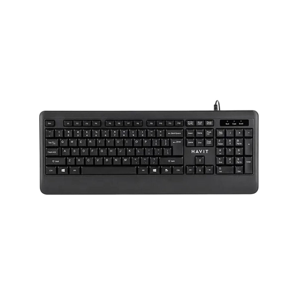 HAVIT KB253 USB Wired Keyboard The Havit KB253 USB Wired Keyboard offers an ergonomic design that enhances user comfort, particularly during extended use. It features independent multimedia shortcut keys for seamless operation and a keycap with an edge ball shape for a comfortable and efficient typing experience. This Havit KB253 Wired Keyboard is available in classic black and white, making it a versatile choice for various setups. With 104 keys, a reliable USB interface, and a button life of 8 million presses, it combines practicality with longevity, making it suitable for various computing needs.