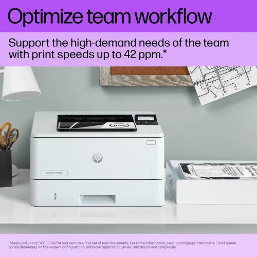The HP LaserJet Pro 4003dw Single Function Mono Laser Printer is a high-speed, professional-grade printing solution designed for businesses and professionals who demand efficiency, reliability, and superior performance. Featuring print speeds of up to 42 pages per minute (letter) and 40 ppm (A4), this powerful monochrome printer ensures your documents are ready in seconds with consistent, high-quality output at 1200 x 1200 dpi resolution.