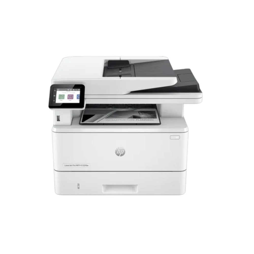 The HP LaserJet Pro MFP 4103fdn is a powerful multifunction monochrome laser printer engineered to handle the fast-paced demands of modern business environments. Combining printing, scanning, copying, and faxing capabilities in one robust device, this HP printer delivers professional-grade performance, advanced connectivity, and reliable productivity to streamline office workflows.