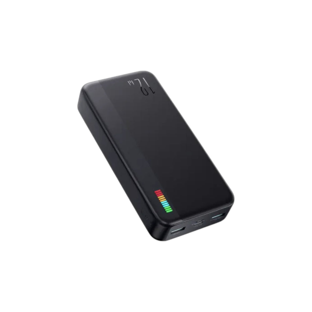 The Joyroom JR-T017 Dazzling Series 20000mAh 12W Power Bank is a high-capacity and efficient portable charging solution designed for users who need reliable power throughout the day. With a massive 20000mAh battery (74Wh), it provides ultra-long backup, making it ideal for travel, outdoor activities, and heavy daily usage. Despite its huge capacity, the power bank maintains a slim and easy-to-carry design, ensuring convenient portability. Its 2.4A high-current output delivers faster charging compared to standard models, offering quick power boosts for your smartphones and other USB-powered devices. Featuring 12 multicolor LED indicators, the JR-T017 displays the remaining battery percentage accurately, so you always know when it’s time to recharge. Equipped with two input ports (Type-C and Micro USB) supporting 5V=2A, and two USB output ports delivering 5V=2.4A each, it allows you to charge two devices simultaneously. With a rated capacity of 12000mAh and an energy conversion efficiency of ≥80%, this power bank ensures efficient power transfer with minimal loss. Designed for practicality and performance, the Joyroom JR-T017 Dazzling Series 20000mAh 12W Power Bank is a dependable solution for anyone seeking long-lasting power on the go.
