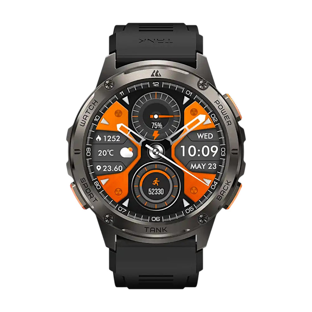The Kospet Tank T3 Smart Watch is a durable and feature-rich wearable that can handle the demands of an active lifestyle. This wristwatch features a brilliant 1.43" AMOLED display with a resolution of 466*466, providing sharp images and simple navigation. The screen, encased in a full-metal bezel and covered by Corning Gorilla Glass, is scratch-resistant and long-lasting, assuring reliability in challenging conditions. With a water resistance rating of 5 ATM and an IP69K classification, the Tank T3 is dive-proof and can endure high-pressure water jets, making it ideal for swimming, snorkeling, and other water-related sports. It boasts 15 MIL-STD-810H certifications and has completed 28 trustworthy internal tests to ensure endurance against shocks, drops, severe temperatures, and more. The Kospet Tank T3 has easy Bluetooth calling features, letting users to make and receive calls directly from their wrist without the need for a smartphone. This function improves connectivity and accessibility, particularly for outdoor activities or when hands-free communication is required. Whether you're enjoying the outdoors or navigating urban surroundings, the Tank T3 Smart Watch is a reliable companion, combining durability, practicality, and style in a single robust compact.