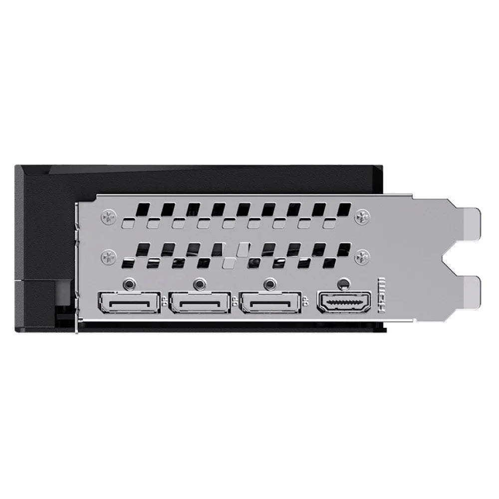For connectivity, the card includes three Display Port outputs and one HDMI port, allowing multi-monitor setups and ultra-high-resolution displays up to 8K (7680x4320). It fits seamlessly into ATX and full-tower cases, combining sleek aesthetics with rugged build quality.