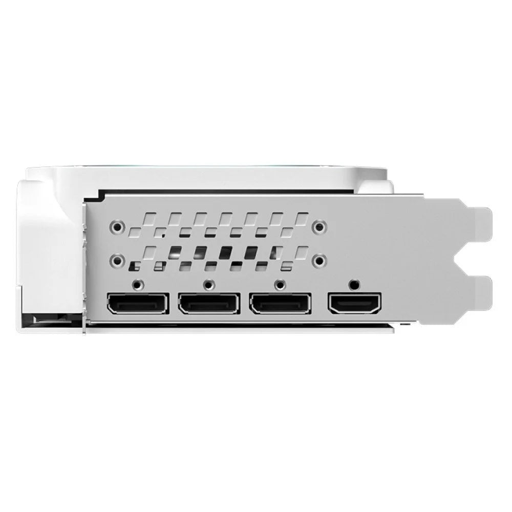 Connectivity is versatile, featuring three DisplayPort outputs and one HDMI port, allowing support for multiple monitors and high refresh rate displays. The sleek and compact design fits seamlessly into mid-tower and full-tower cases, offering both style and practicality.