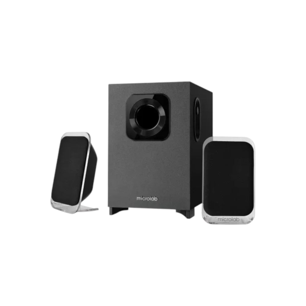 The Microlab M113BT 2.1 Multimedia Bluetooth Speaker is a sleek and stylish audio system that combines modern design with advanced technology for an exceptional listening experience. Its transparent satellite speakers paired with a powerful subwoofer deliver clear highs and deep, punchy bass, producing a total output of 24W. Equipped with the latest Bluetooth technology, it allows seamless wireless music streaming from smartphones, tablets, and other devices. The inclined satellite design maximizes sound projection, filling any space with immersive audio. Compact yet powerful, the M113BT is perfect for home, study, bedroom, or kitchen use, while the side panel controls give you easy and precise sound management.