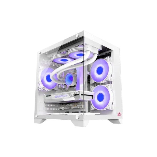 The Monarch Mystery Box X5 Desktop Gaming Case White is designed to deliver the perfect balance of style, durability, and performance for modern gamers. Built to support both M-ATX and ITX motherboards, this case offers excellent flexibility for a range of system builds while maintaining a compact and elegant form. The dual tempered glass panels on the front and left sides not only ensure durability and protection but also showcase your internal components with stunning clarity, allowing your gaming setup to shine with confidence.