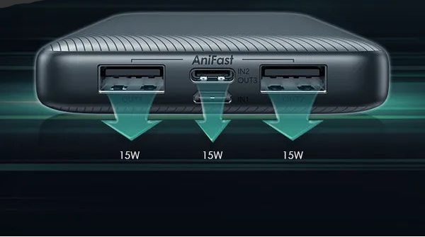 Equipped with dual input ports — Micro USB (5V/2A) and Type-C (5V/3A) — this power bank allows for fast recharging in just a few hours using the Type-C port. It also features three output ports (two USB-A and one Type-C), each supporting up to 5V/3A, enabling you to charge up to three devices simultaneously with efficient power delivery.