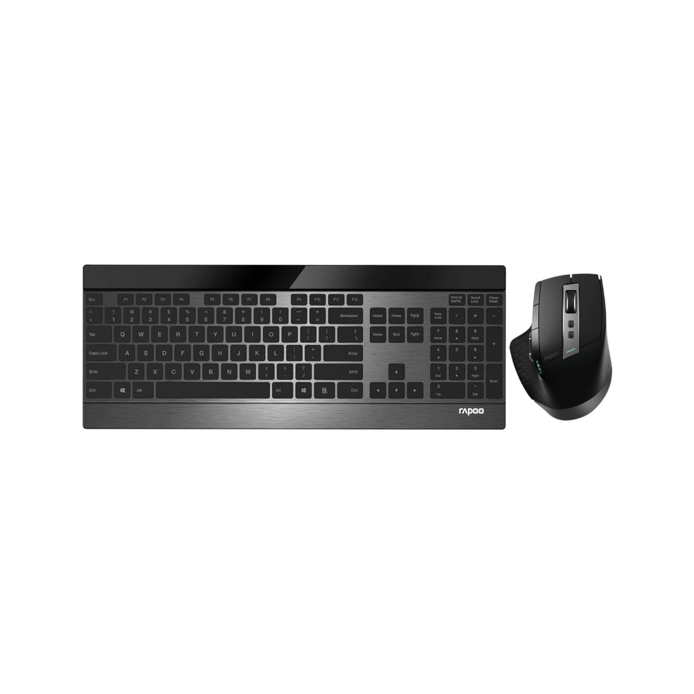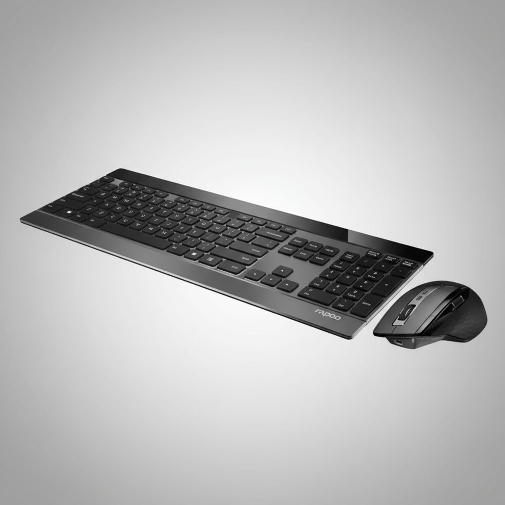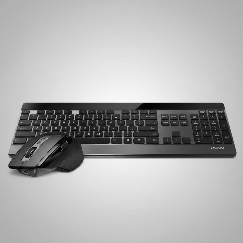 Rapoo 9900M Multi-mode Wireless Keyboard & Mouse Combo The Rapoo 9900M Multi-mode Wireless Keyboard & Mouse Combo offers a reliable multi-device connection via Bluetooth 3.0, Bluetooth 4.0, and a 2.4G USB receiver. You can freely switch between four devices with the keyboard and mouse. The wireless transmission guarantees minimal interference with other wireless devices. The ultra-thin keyboard is only 4.0mm thick and features a stainless steel base, a precise scissor key structure, and floating chic buttons, making it both stylish and durable. The combo comes with a 730-day warranty.