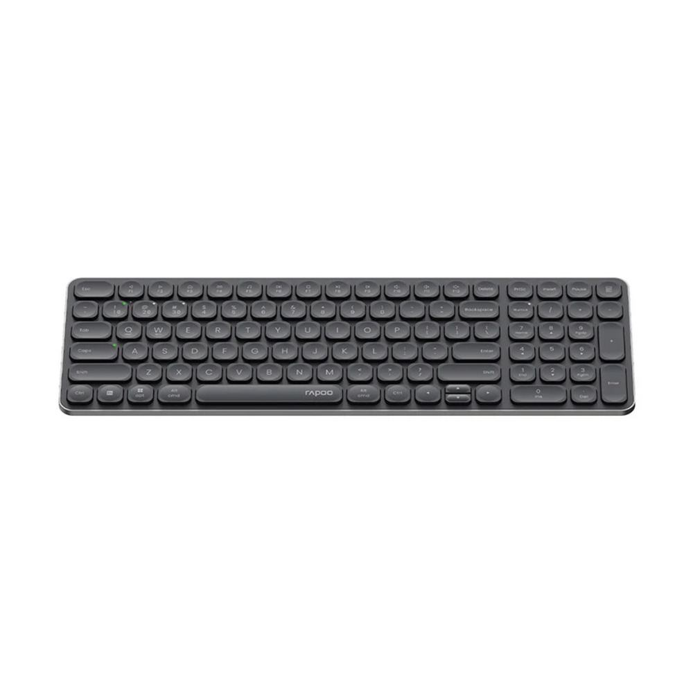 Rapoo E9350L Multi-Mode Wireless Keyboard The Rapoo E9350L Multi-mode Wireless Keyboard combines a sleek, ultra-thin profile with versatile connectivity. Its multi-mode connectivity supports Bluetooth 4.0, 5.0, and 2.4GHz wireless, allowing for seamless switching between up to four devices with a reliable 10-meter range. The low-profile, silent keys provide a pleasant and quiet typing experience. Powered by an eco-friendly rechargeable lithium battery, the keyboard offers extended life on a single charge. Convenient multimedia shortcut keys provide quick access to crucial functions, boosting productivity. The Rapoo E9350L is a plug-and-play device that requires no additional drivers or software.