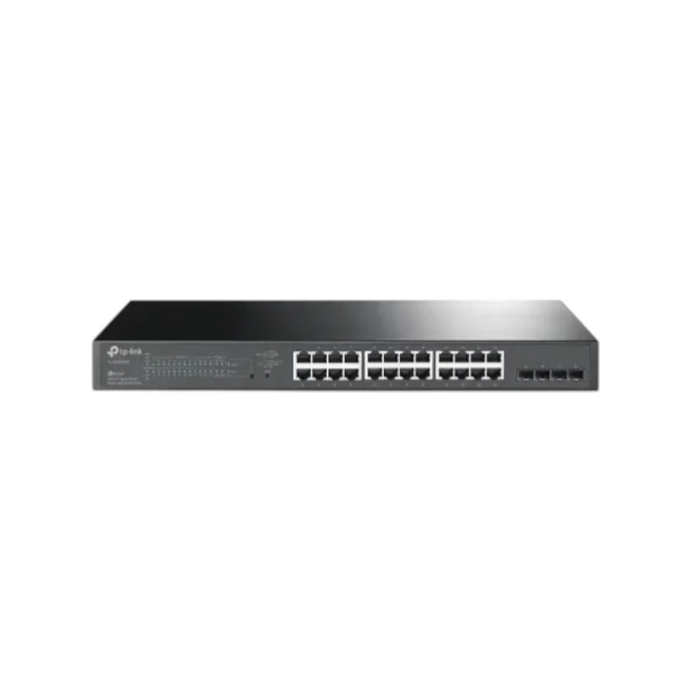 The TP-Link TL-SG2428P JetStream 28-Port Gigabit Smart Switch with 24-Port PoE+ is a powerful and feature-rich networking solution designed for enterprise and surveillance deployments. It features twenty-four Gigabit PoE+ RJ45 ports compliant with IEEE 802.3af/at standards and four Gigabit SFP slots for flexible fiber uplink connectivity. With a substantial 250W total PoE power budget, it efficiently powers IP cameras, wireless access points, and VoIP phones while maintaining stable data transmission across all connected devices.