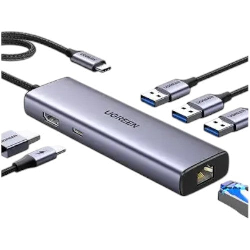 The UGREEN Revodok 1061 CM512 Multifunctional 6-in-1 Type-C Docking Station is a compact and versatile connectivity solution designed to transform your USB-C laptop or tablet into a complete workstation. Built for modern professionals, content creators, and tech enthusiasts, this docking station expands your device’s capabilities while maintaining a sleek and portable design suitable for both office and on-the-go use. It features a well-balanced selection of essential ports, including a 1000Mbps Ethernet port for stable and high-speed wired internet access, a 4K HDMI port for enhanced visual output, a 100W USB-C Power Delivery port for pass-through charging, and three USB-A data ports supporting up to 5Gbps for fast and efficient file transfers. The Power Delivery support ensures your laptop or tablet stays charged while all ports remain in use, eliminating interruptions during work sessions. With support for up to 4K@30Hz resolution, the HDMI output delivers clear and sharp visuals for presentations, streaming, and multi-display setups. Designed for broad compatibility, the UGREEN Revodok 1061 CM512 works seamlessly with a wide range of USB-C devices including MacBook Pro, MacBook Air M1/M2, iMac, Dell XPS, ThinkPad X1, ZenBook, iPad Pro, Chromebook, Surface, and more, making it a reliable all-in-one docking solution for multi-device environments.